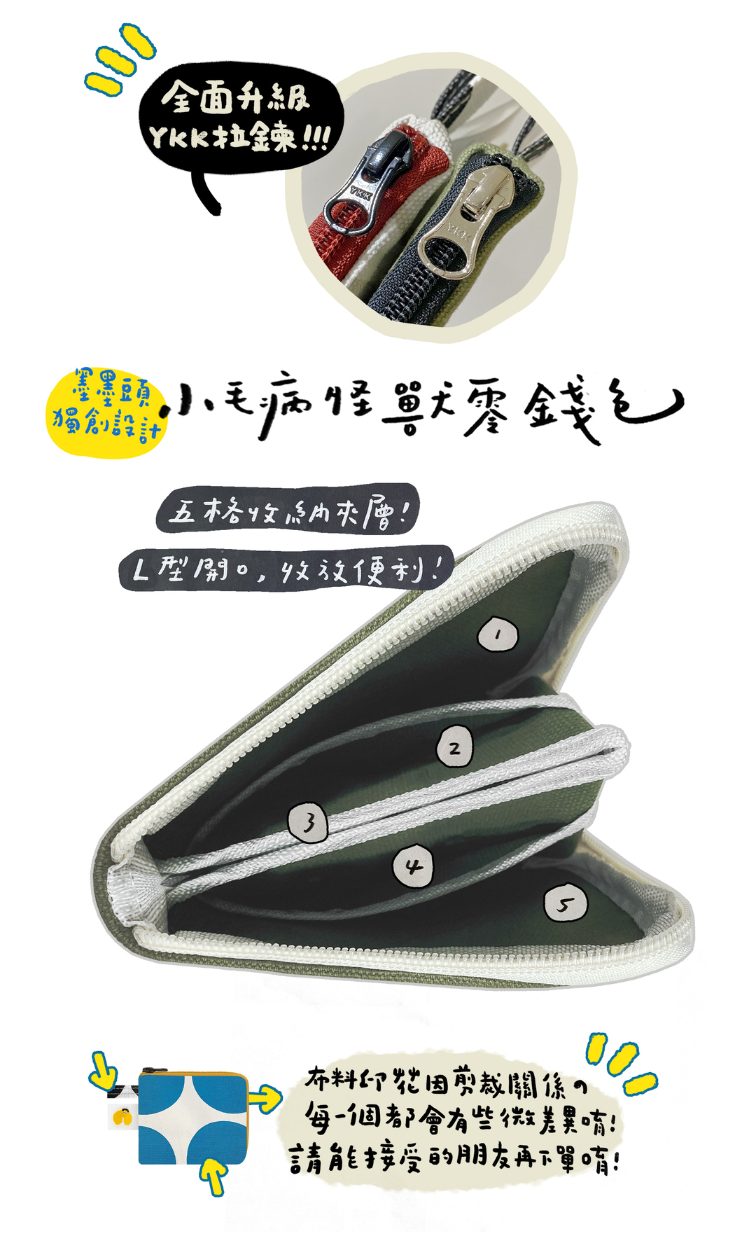 墨墨頭獨家設計!共有五格收納夾層,